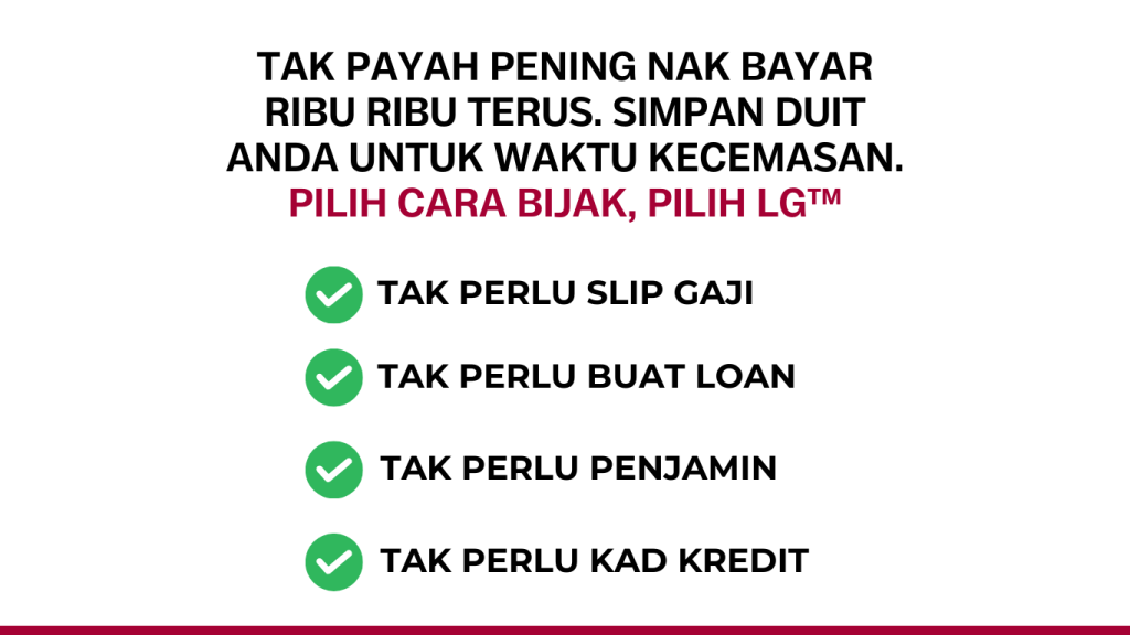 Promo Pendaftaran produk LG sekarang adalah percuma ( Pendaftaran sekiranya Promo tamat RM250 ). Dapat barang, bulan depan baru bayar mengikut plan bulanan.